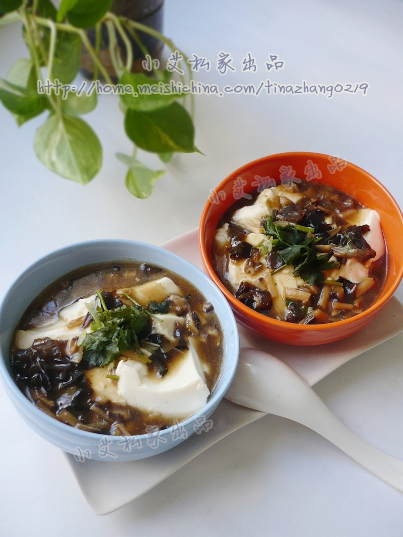 9:汁烧开后调味,加入适量的生抽和冰糖,倒入豆腐块;