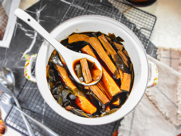 海带100g;黑豆腐干适量;黑腐竹适量;