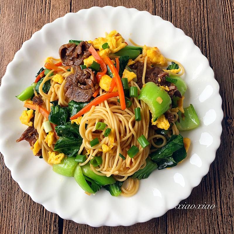 牛肉肠炒面是一道快手又美味的家常主食,将劲道的面条与咸香的牛肉肠完美结合。其做法简单,核心在于先将面条煮至八成熟,再将牛肉肠切片与蔬菜一同爆香,最后混合翻炒,以酱油、蚝油等调味,出锅前撒上葱花,香气扑鼻,一盘色香味俱全的炒面便轻松上桌。