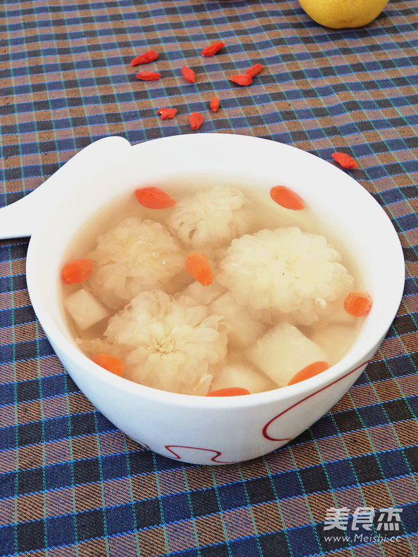 6:一碗润肺清热的菊花雪梨汤做好了.