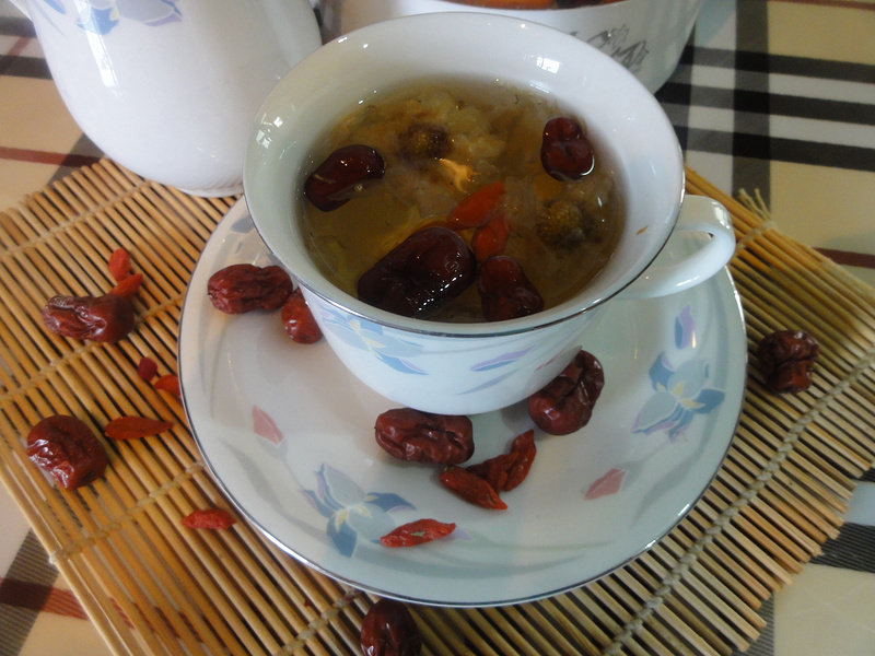 脾胃虚寒的朋友,可在花茶里添几颗红枣或2颗桂圆,味道更清甜。