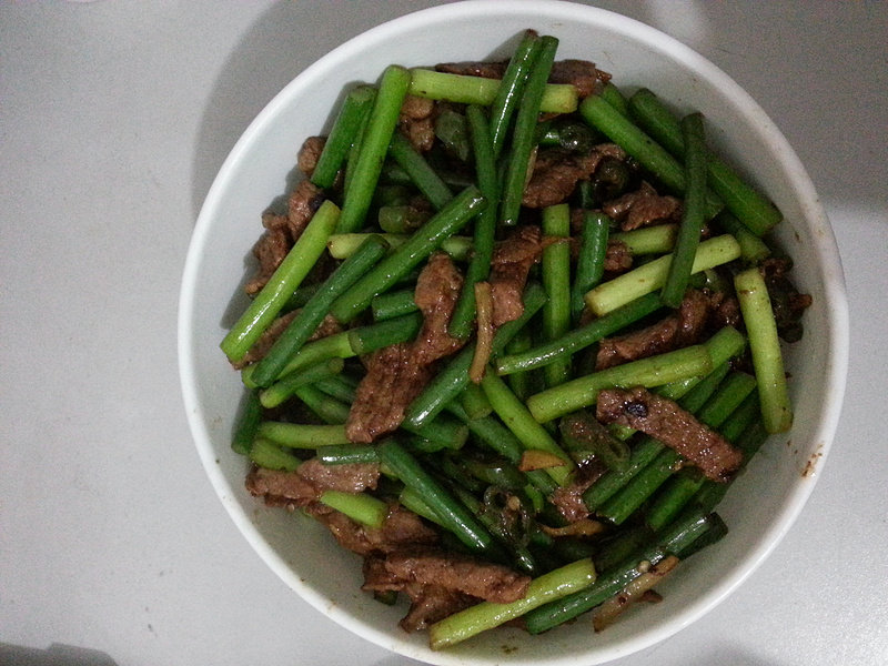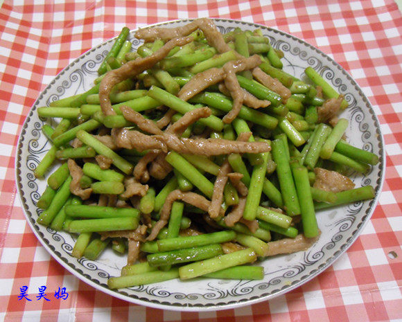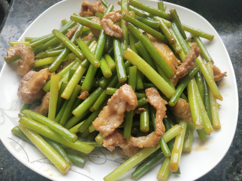 蒜薹吃脆,快火;肉丝吃嫩,加少许蛋清腌制