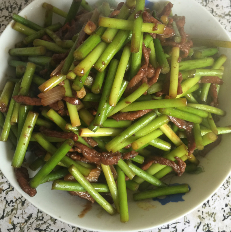 蒜薹要多炒一会,炒到入味菜好吃,否则会有辣的感觉
