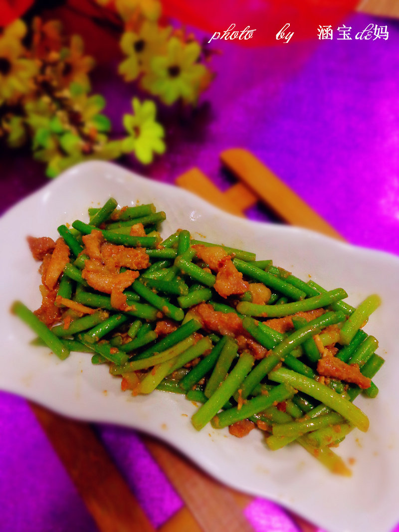 11:炒香后放入腌制好的肉丝,翻炒均匀