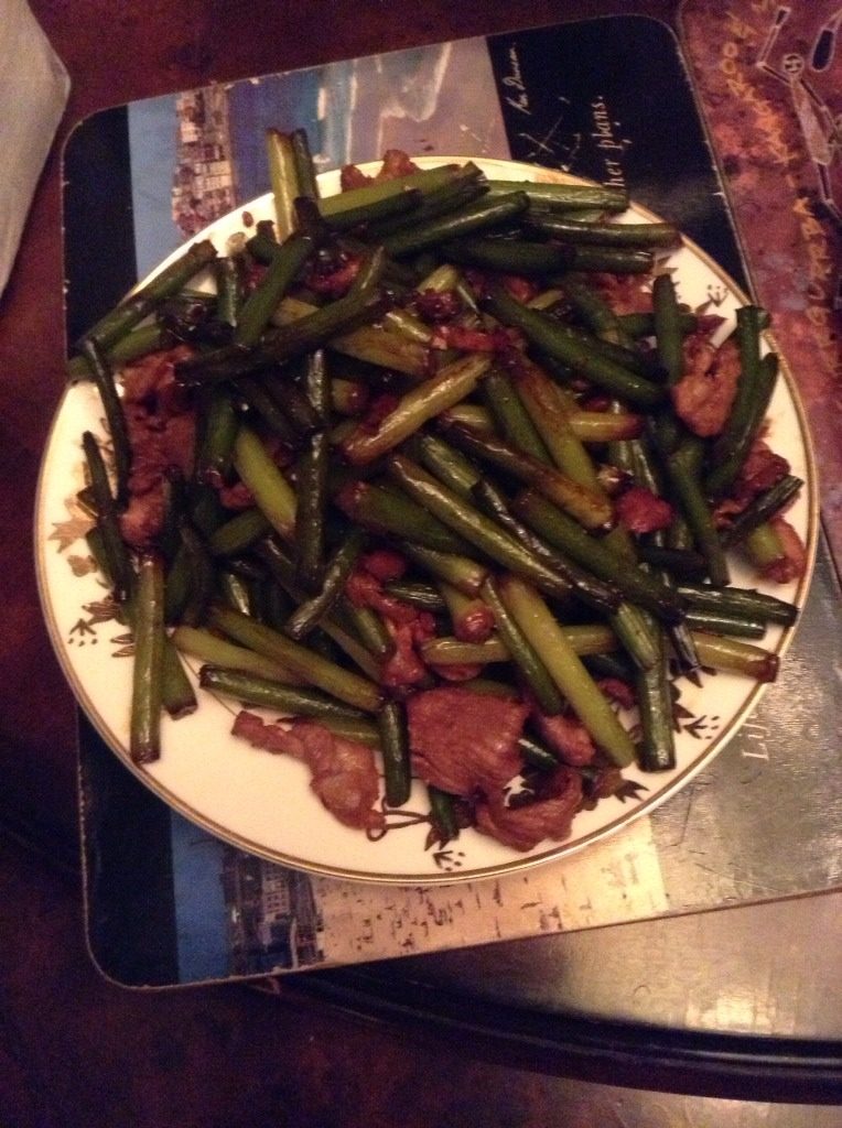 3:下锅煸炒半熟即可。捞出来,留底油。
