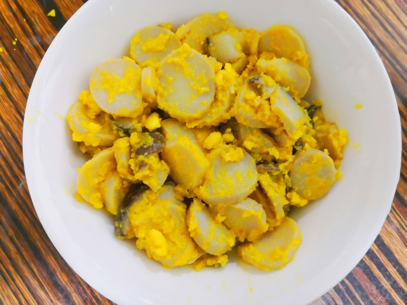 杏鲍菇100g;咸蛋3个;