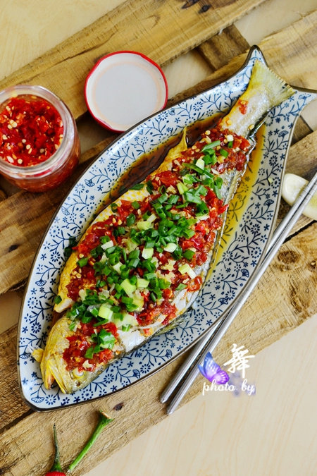 黄花鱼一条(700克);剁椒一勺半;姜适量;料酒适量;