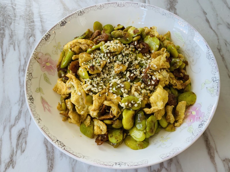 火麻仁鸡蛋虾仁炒鲜蚕豆