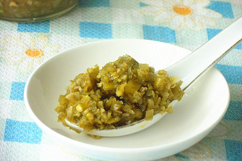 6:把拌均的剁辣椒装入密封罐,存放阴凉处。至少要放一周之后,即可食用。吃的时候,用干净的勺子把当餐要吃量勺出,把食用油烧香,淋在剁辣椒上面,开胃下饭菜开动了。PS:最佳吃的时间,2-3个月,可以存放12个月。