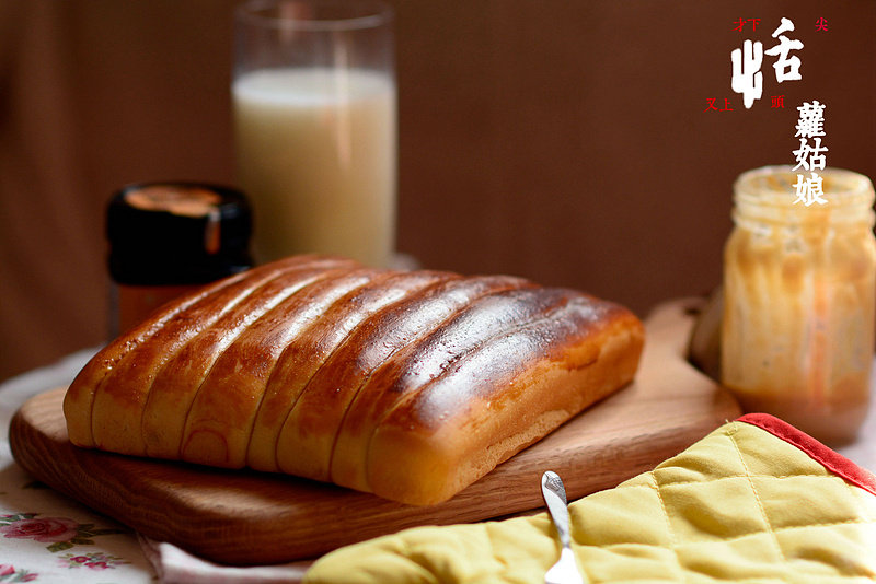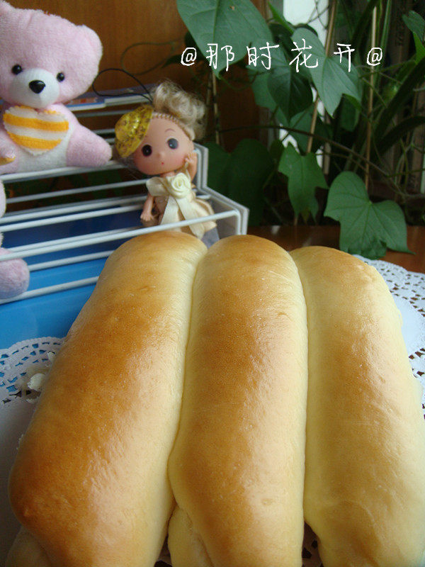 高粉200克;低粉50克;水105克;酵母3克;鸡蛋25克;炼乳50克;奶粉10克;盐3克;糖20克;