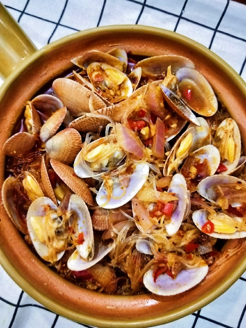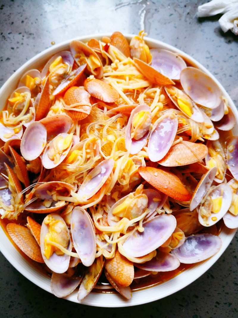 主料可以加虾,配料可以加大白菜,香菇干等等!花甲一定要提前泡下让其吐沙干净,蒜蓉酱可以去超市买,加点白糖提提鲜。