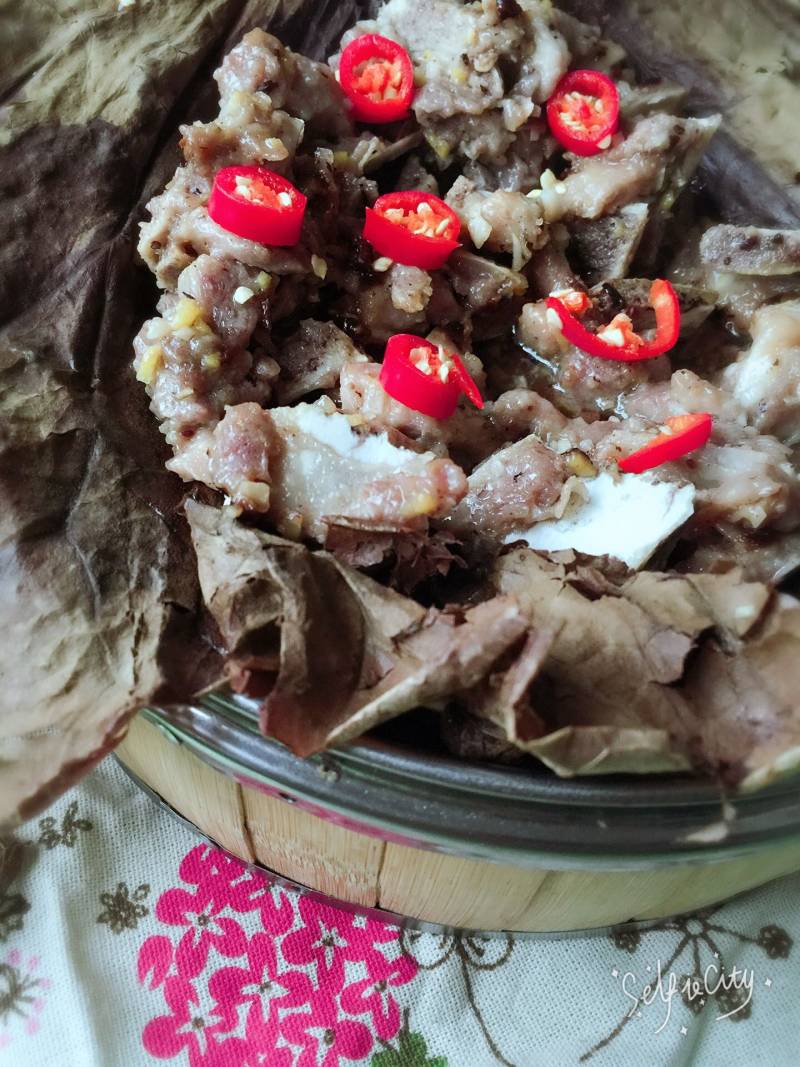 11:包上荷叶中火蒸1小时至排骨酥软。