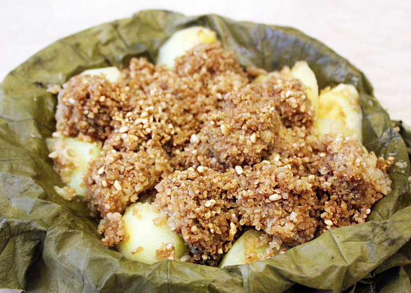 13:将荷叶合拢,盖上盖。入大火蒸40分钟