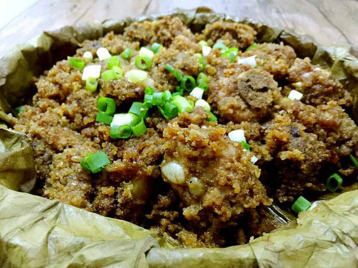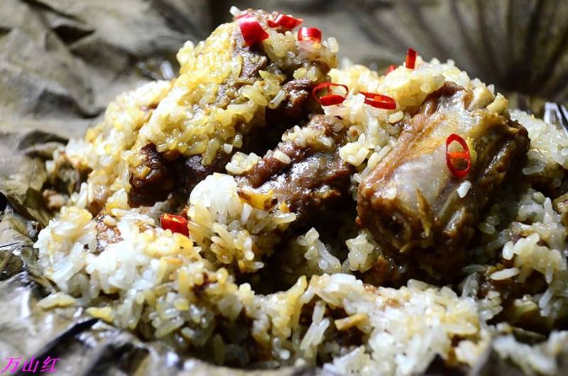 15:非常非常的美味哦,外面裹着的米是酥糯的,里面的排骨是软嫩的,十三香的浓郁加上荷叶的清香,更是给这道菜加了分。