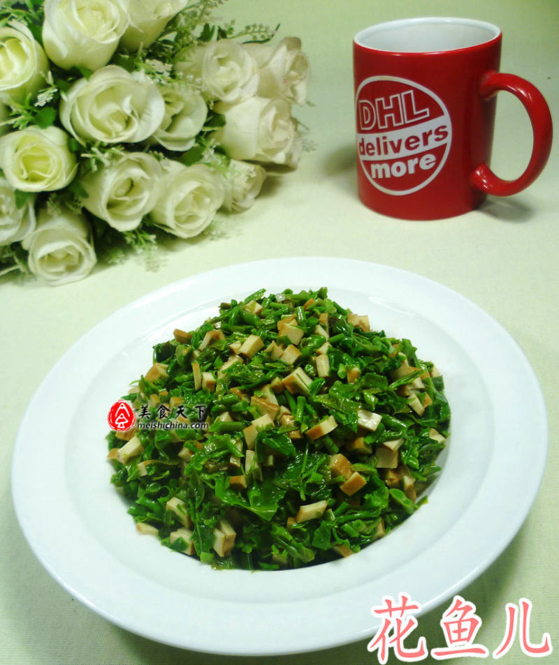 1.芹菜叶要提前焯烫、烫熟;2.豆干本身已经有咸味了,所以没有再另外加盐。