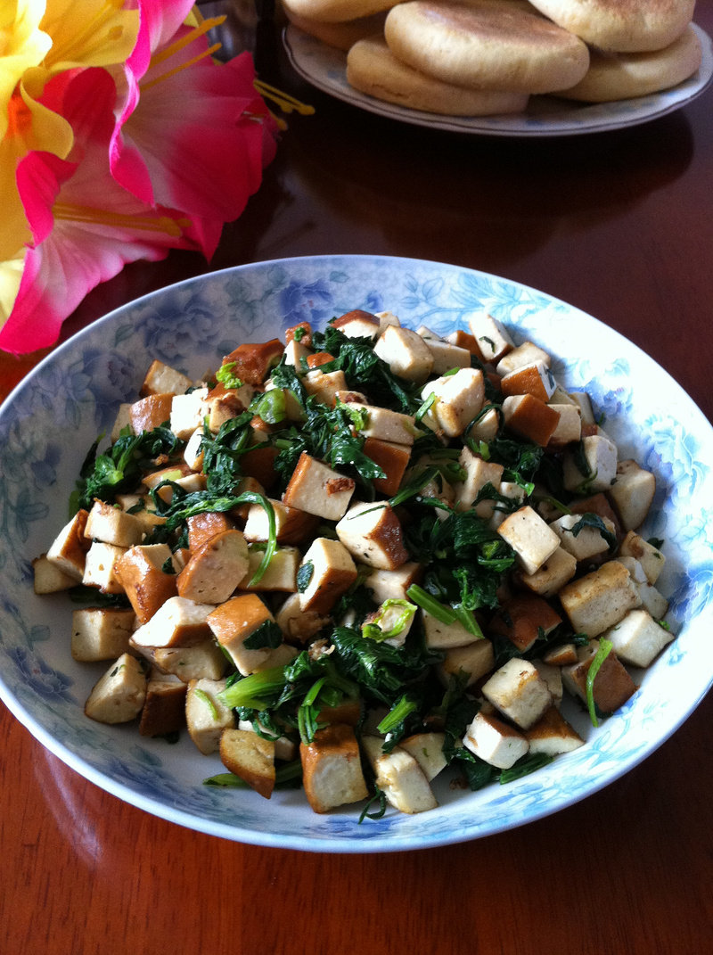 6:热油锅,放入香干丝煎到微黄;当然焯水也可以哈,我喜欢煎一下更香~~