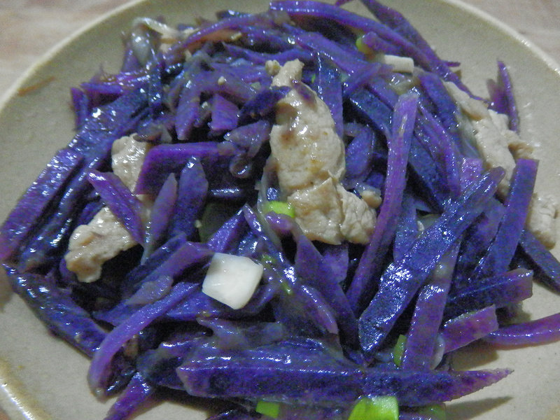7:放入紫土豆丝翻炒,中间可以分次加入少许清水