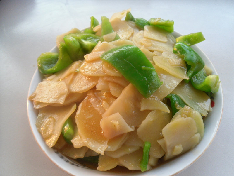 因为孩子爱吃不用水浸泡过的土豆片,所以土豆片没有用水泡,而是直接炒的。