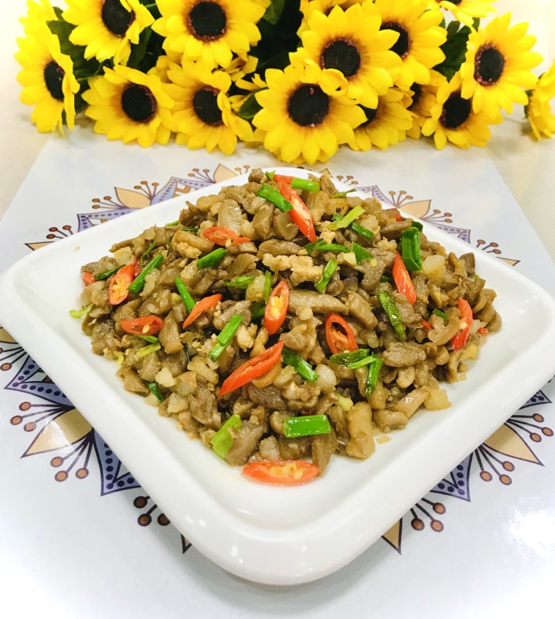 5:倒入萝卜干爆炒两分钟,盛起来备用。