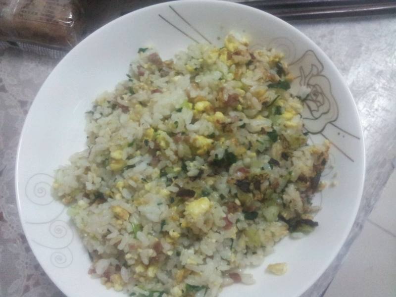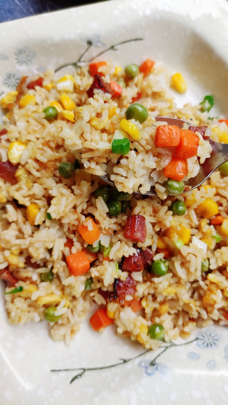 12:成品。又香又好吃的香肠炒饭就做好啦。