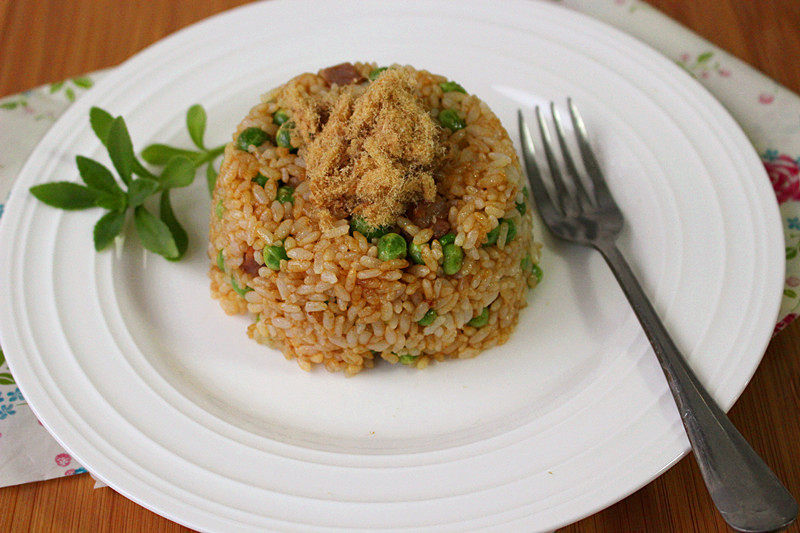 米饭适量;香肠半根;豌豆适量;肉松适量;