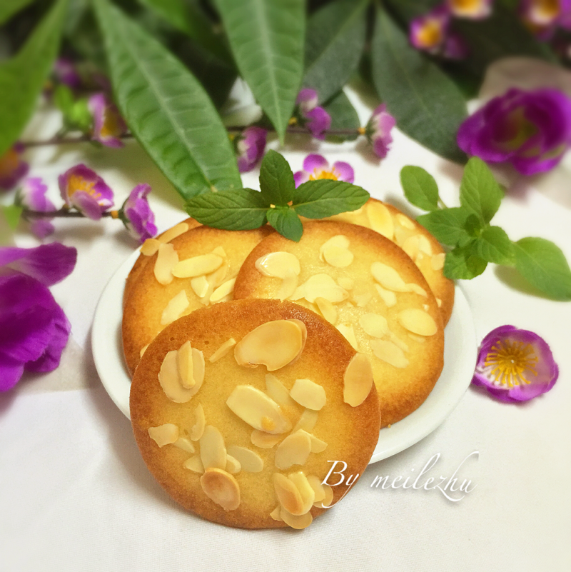 低筋面粉40克;蛋白40克;玉米油40克;杏仁片适量;
