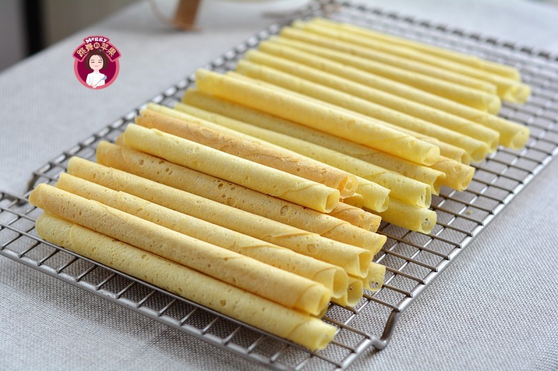 18:将棍子抽出,蛋卷放在晾架上晾凉后入盒子保存。