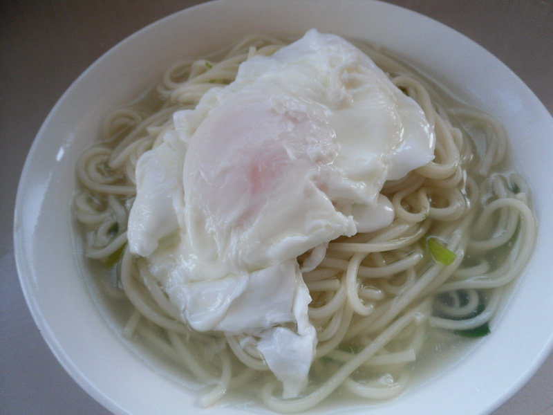 6:出锅,这一大碗鸡蛋面真够多啦,加上滑嫩的鸡肉丸,淡淡的清香,稀里哗啦就吃完了,太好吃了吧。