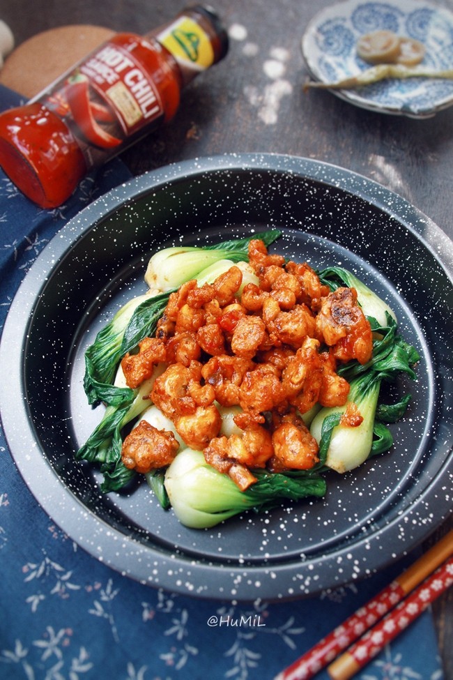 鸡腿500g;冠利辣椒酱1大勺;上海青250g;