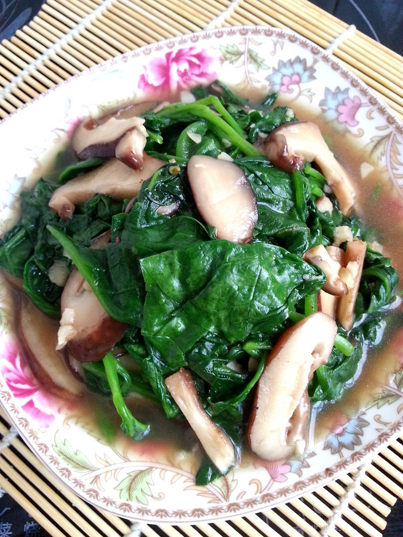 先炒香菇,放入蚝油,让香菇入味。放入木耳叶,要快速翻炒,以免有的木耳叶熟过而塌了。蚝油有一定的咸味,最后加盐时要注意用量。