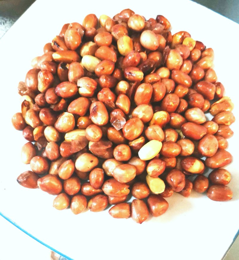3:当花生米不在发出劈啪声,尝起来没有生花生米的腥味,即可将花生米捞出