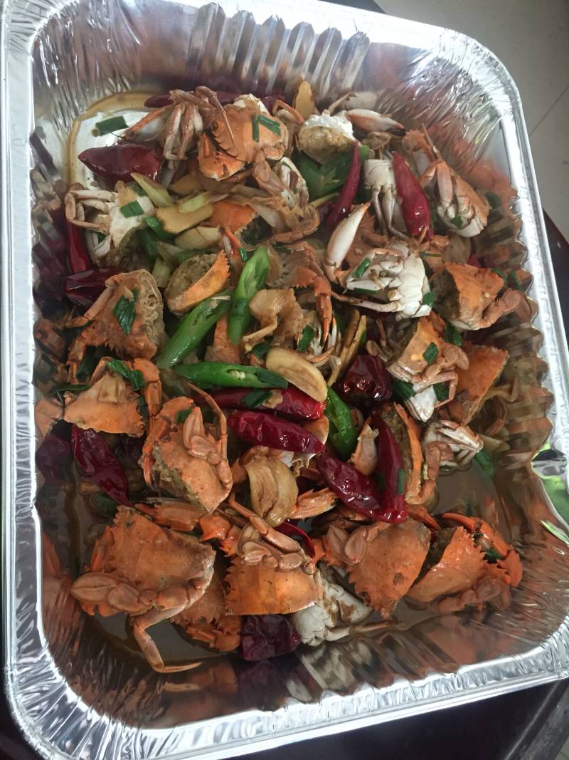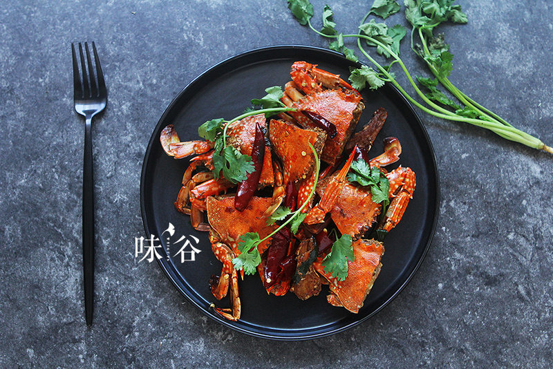 4:热锅冷油依次将姜蒜葱干辣椒放入油锅中再将耗油黄豆浆糖醋生抽依次倒入等配料有香味出来时将煎好的石头蟹倒入