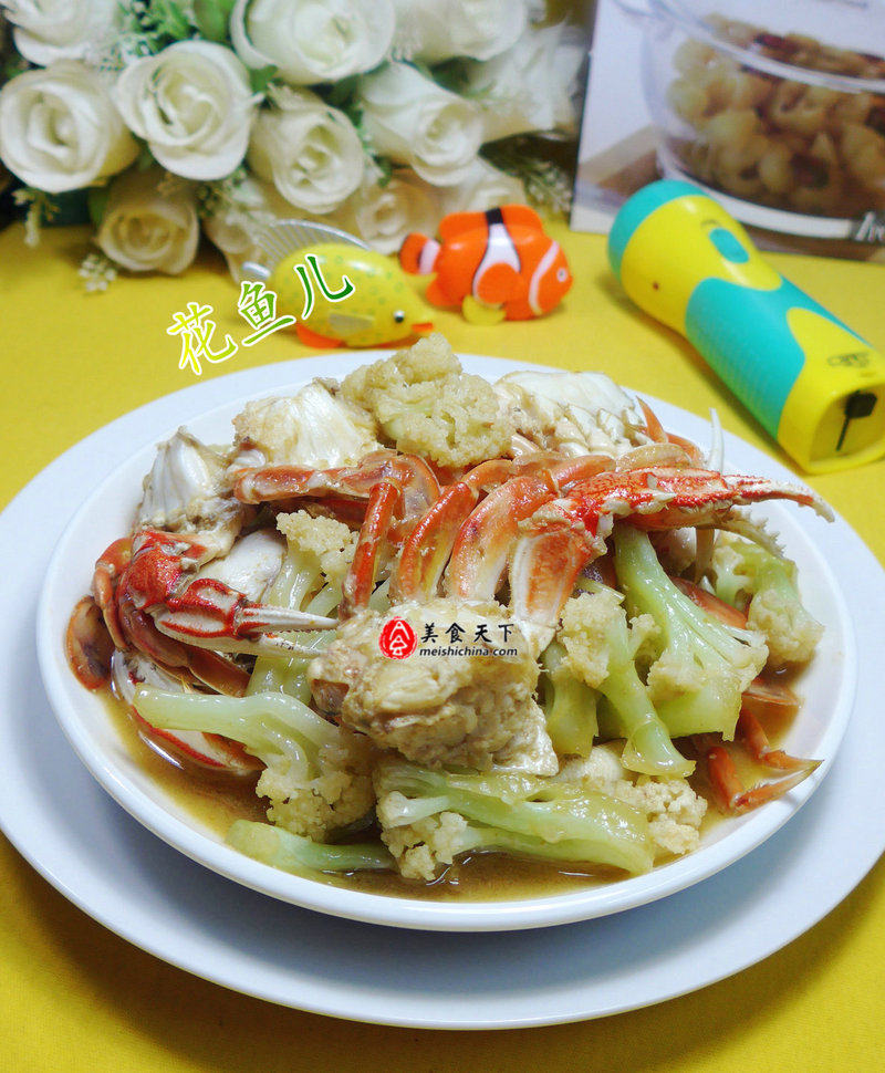 1:材料:小娘蟹(已清洗)、花菜、姜片