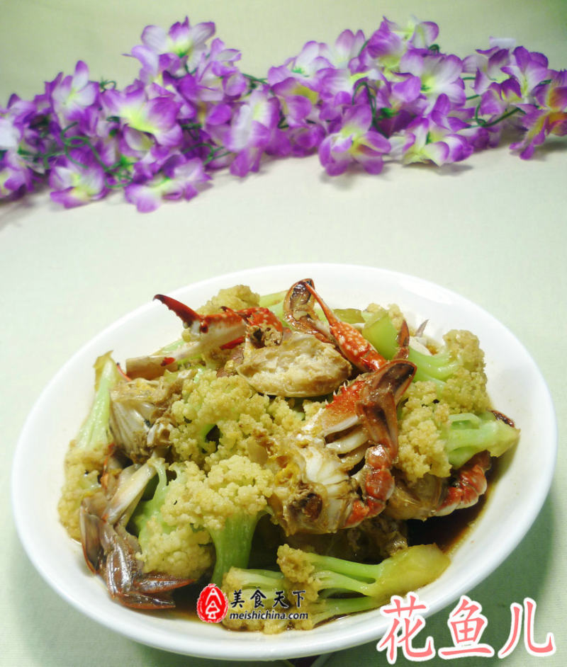 1:食材:花蟹(已清洗)、花菜(已清洗)