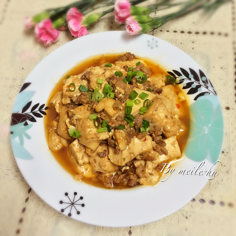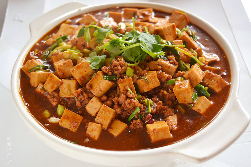 肉末用小火煸香后,再加入豆腐,豆腐入锅后,动作要轻,保持豆腐的完整。水淀粉淋入时,豆腐要轻轻的翻拌,让豆腐肉末裹上浓稠的汁液。