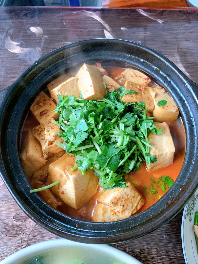 4:豆腐沥干水分,放入砂锅加适量生抽,红烧酱油,加温水,中小火慢慢焖。