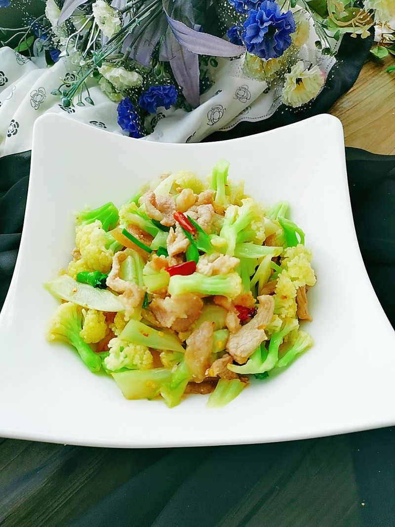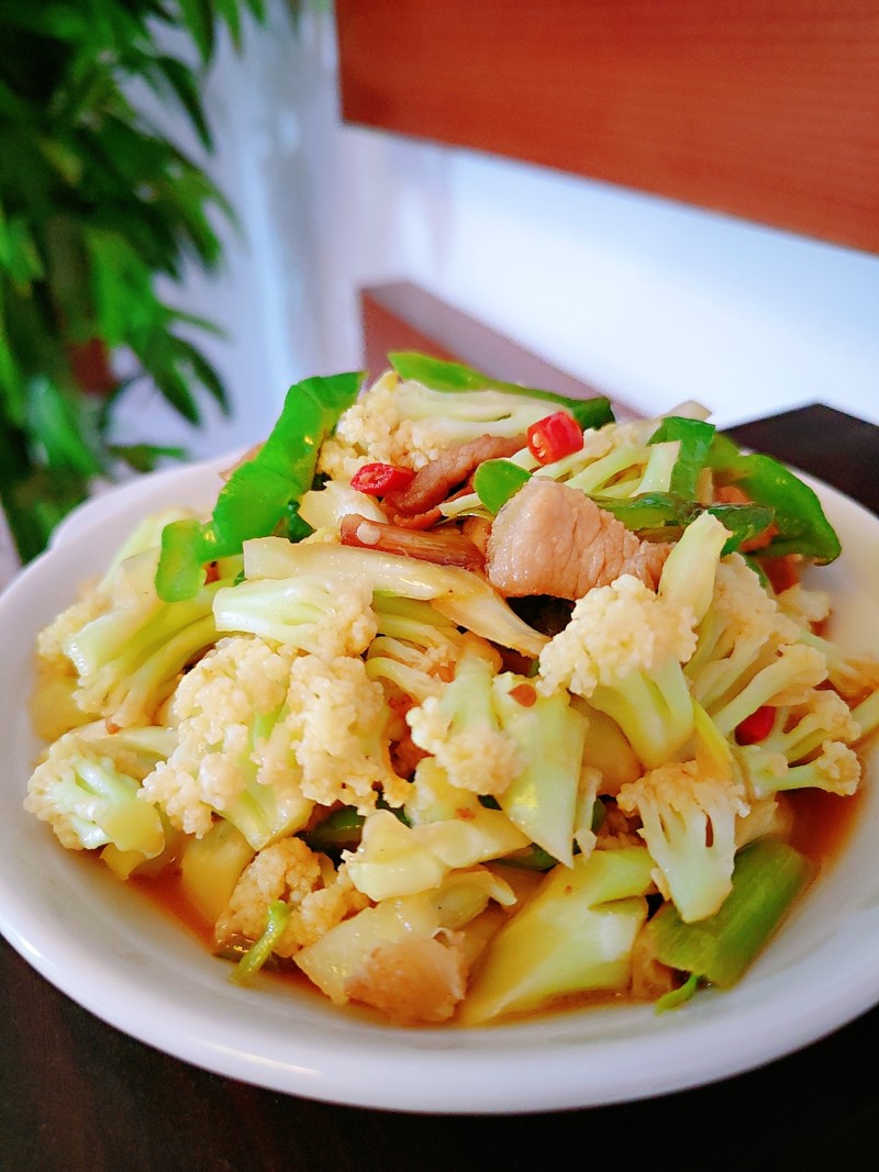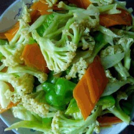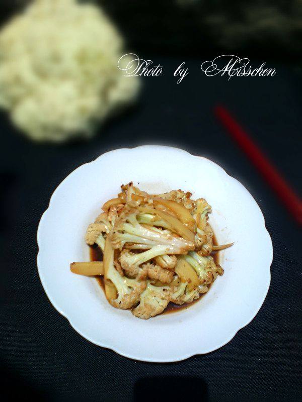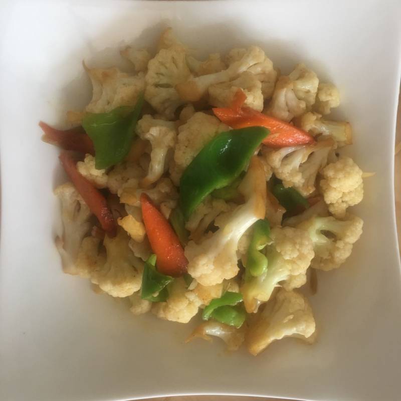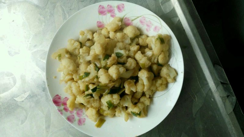 2:喷醋一勺菜花口感脆,放入一勺生抽翻炒五分钟左右即可!