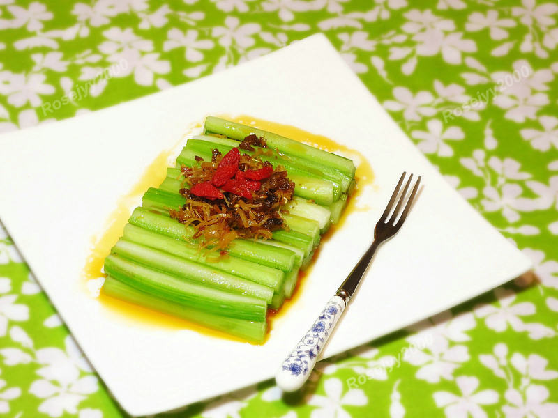 12:将其均匀的浇在油菜上即成。上桌即可食用。