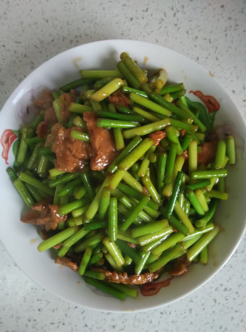 肉适量;蒜毫适量;