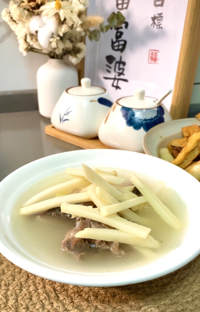 排骨煨笋干,一道家常却总让人惦念的滋味。十种做法,万变不离其宗——煨,是让美味发生的秘诀。排骨的丰腴油脂在慢火中缓缓渗入笋干的每丝纤维,化干柴为柔韧,吸饱了肉香。揭盖瞬间,热气携着醇厚的鲜香扑面而来,排骨酥烂脱骨,笋干嚼劲十足,咸鲜回甘的汤汁更是拌饭绝配。无论家常灶台还是宴客餐桌,这口软烂鲜香,总能让人安心又满足。
