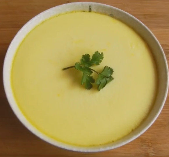 6:蒸好的鸡蛋羹平滑细腻,容器边缘有少量鸡蛋中的油