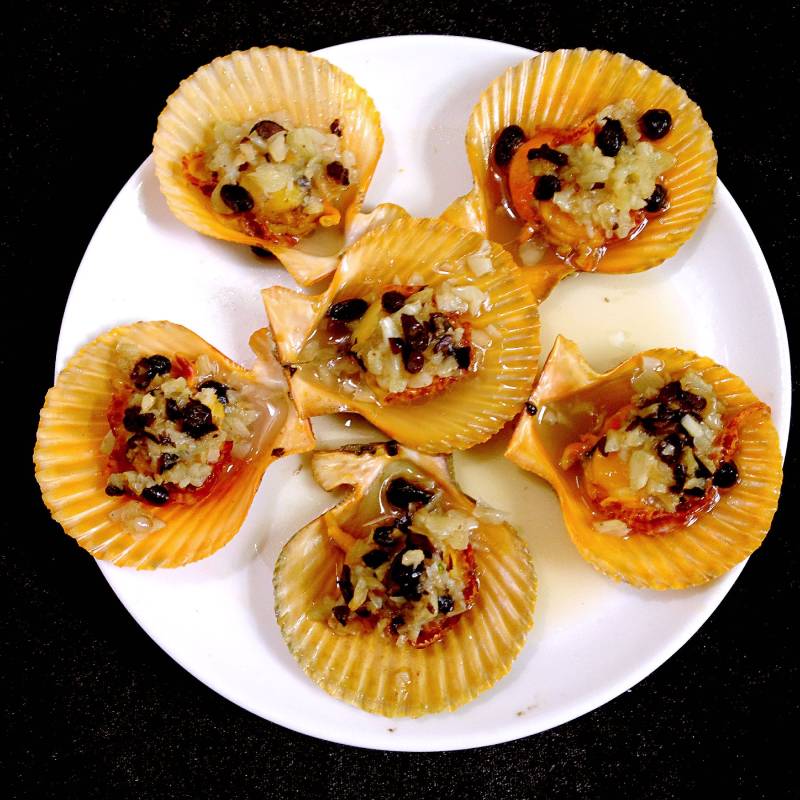扇贝10个;大蒜半颗;干黑豆豉1小勺;
