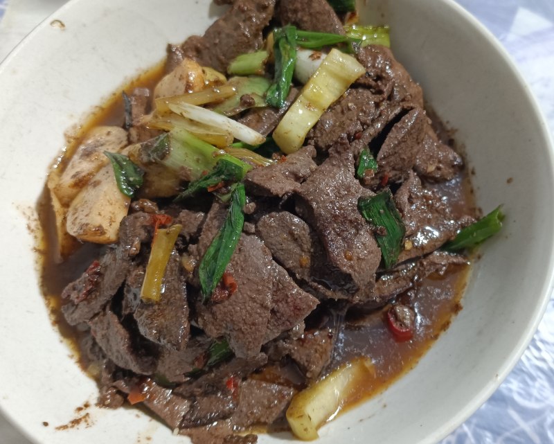 不得不说四川人很会吃,就连这种家长小炒都很讲究。炒个生猪肝炒老了都说不好吃,小的时候在家就没吃过生猪干,好吧!我也学会挑嘴了爱吃嫩的。