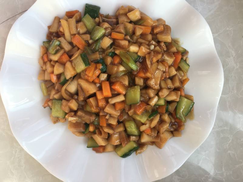 黄瓜丁一勺;胡萝卜丁一勺;蒜末一勺蚝;蚝油一勺;