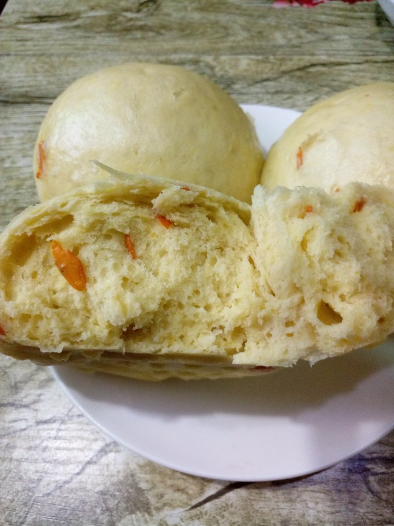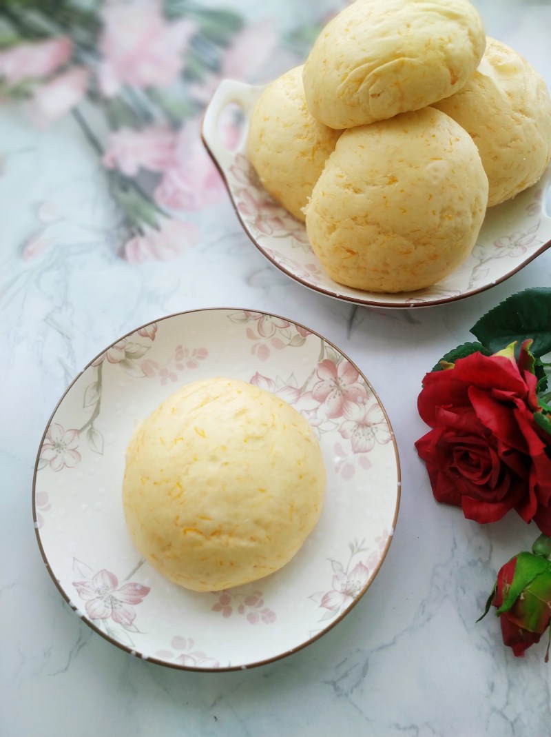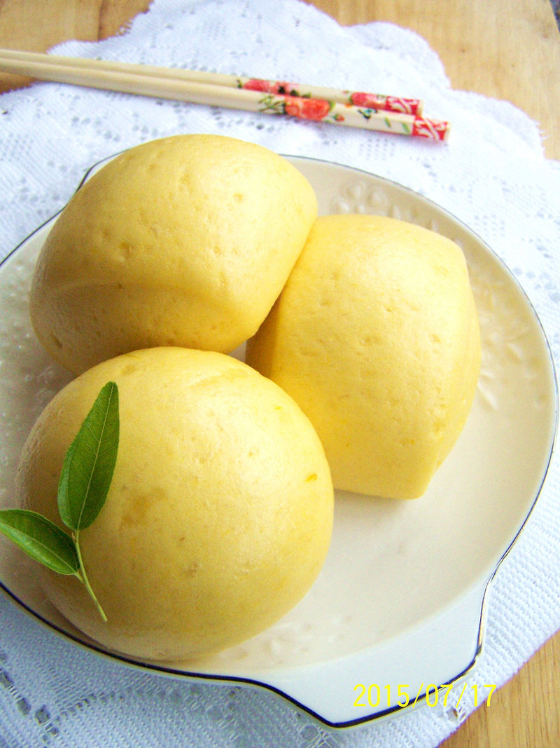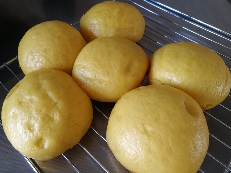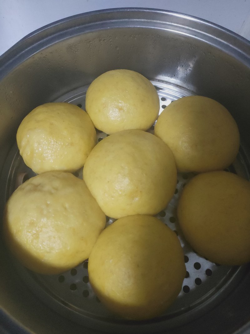 6:蒸25分钟即可,热气腾腾、金灿灿的南瓜馒头出锅了。PS:放馒头到蒸锅的时候,要多留一点空间,馒头发酵变很大、