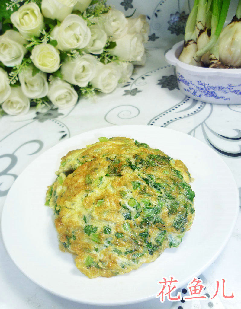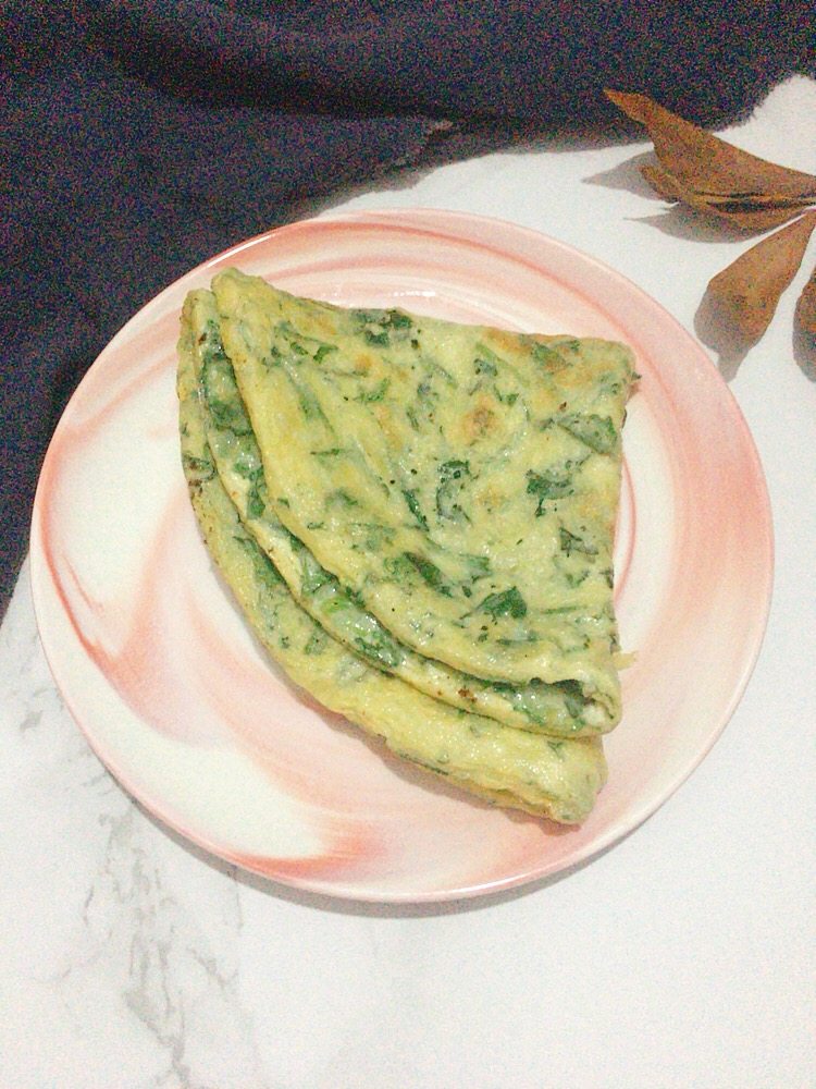 10:将茼蒿鸡蛋饼反个面,中火煎二分钟即可。