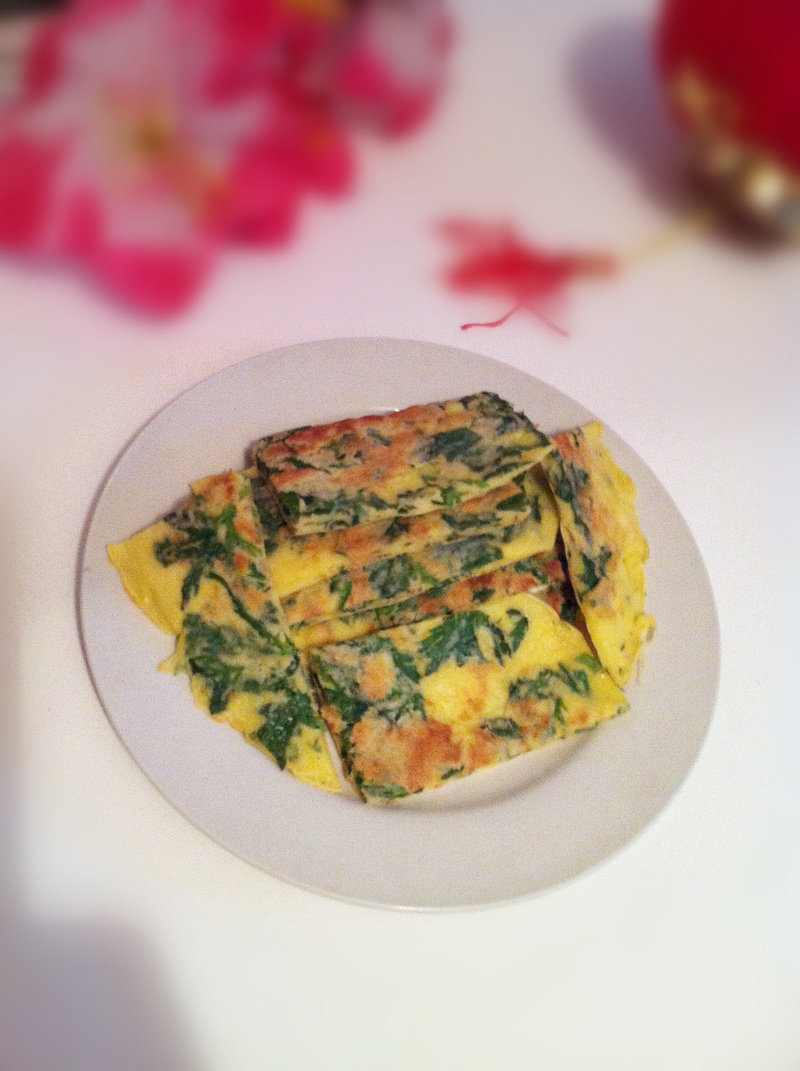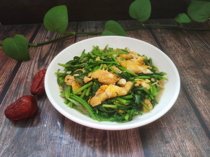 1:用料:茼蒿35克,鸡蛋1个,胡椒粉少许,盐适量