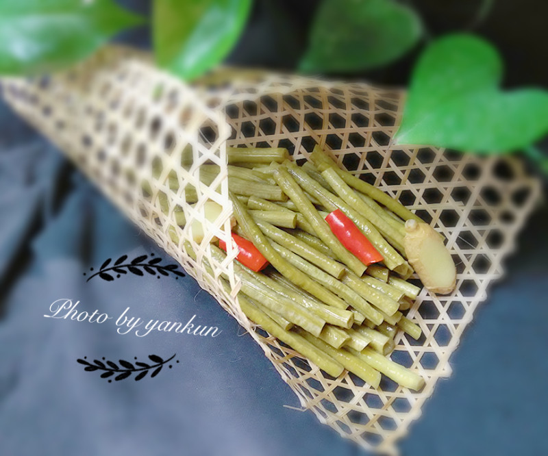 4:酸豆角细节,切成小段。