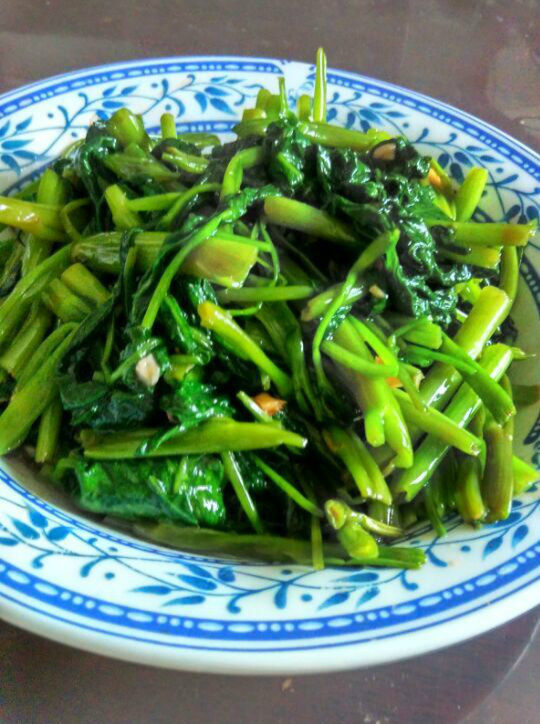 12:油热时下入焯好的空心菜大火翻炒炒煸出水气