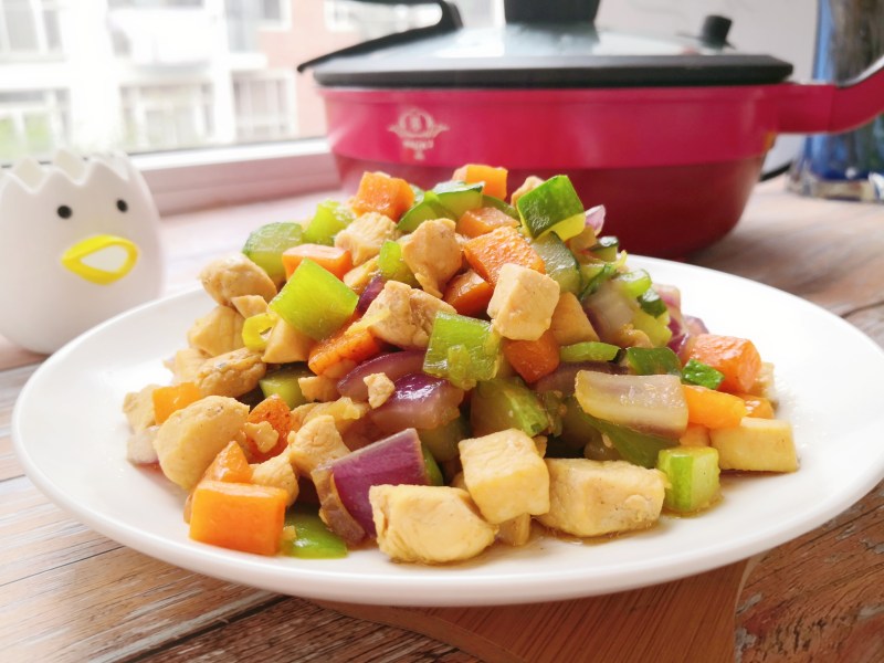 三蔬鸡肉丁是一道色香味俱全的家常快手菜,将鲜嫩的鸡胸肉与清脆的彩椒、爽口的黄瓜和清甜的玉米粒巧妙结合。其精髓在于鸡肉的滑嫩腌制与蔬菜的清脆口感相得益彰,通过简单的快炒锁住食材本味,成菜色泽鲜亮,营养均衡,是兼顾美味与健康的餐桌佳选。